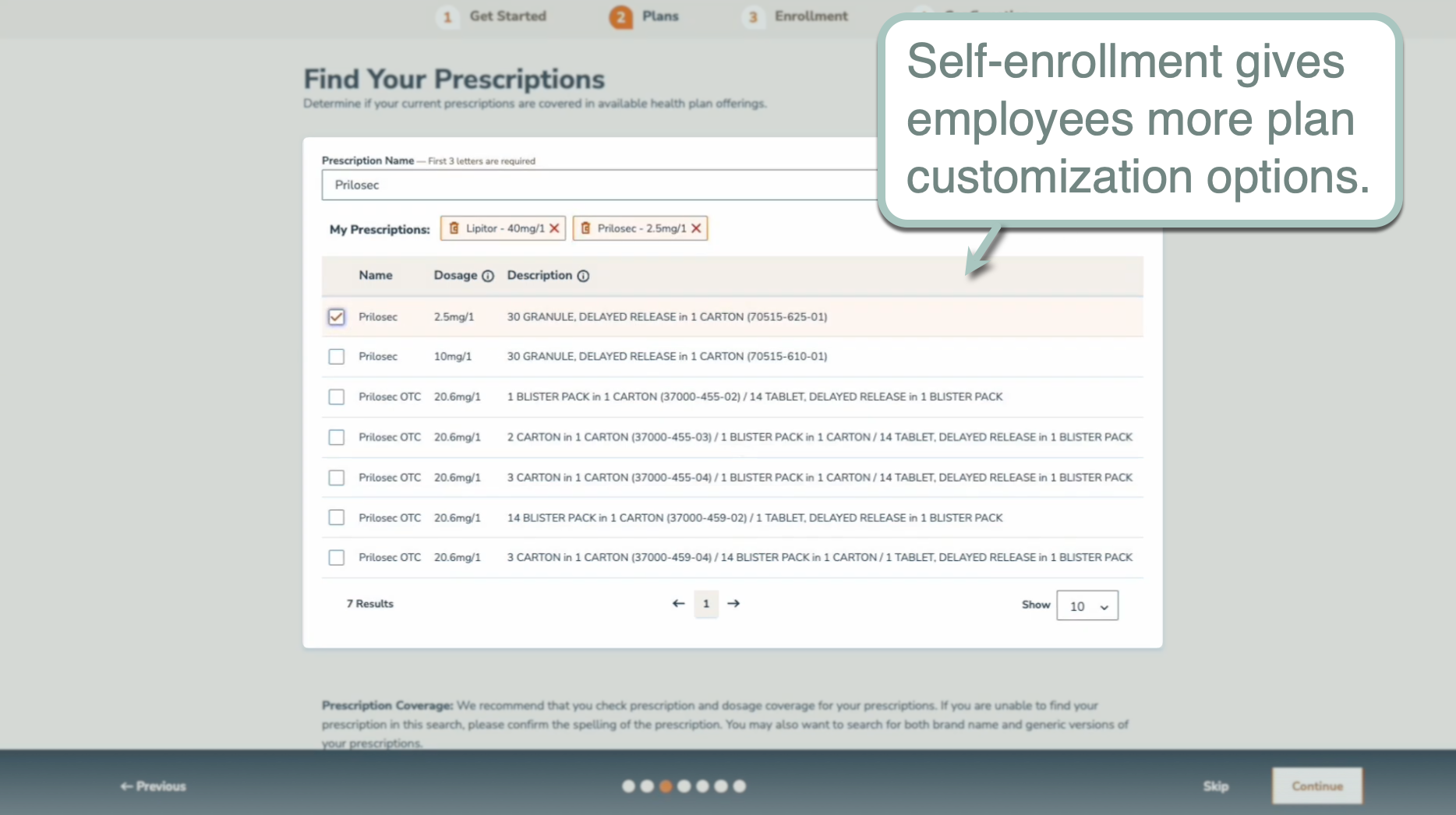 When shopping for a health plan, employees can choose the "Easy Enroll" method to automate the process. Alternatively, they can use the "Self-Enroll" option to access customization options, like prescriptions and preferred healthcare providers.