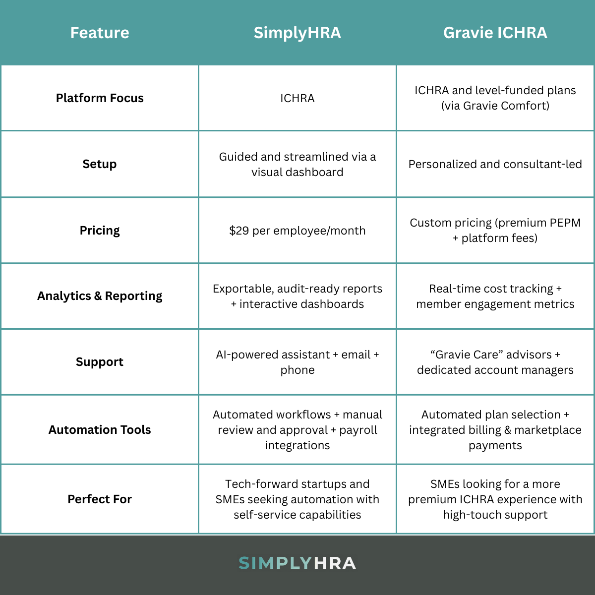 Comparing SimplyHRA vs Gravie ICHRA