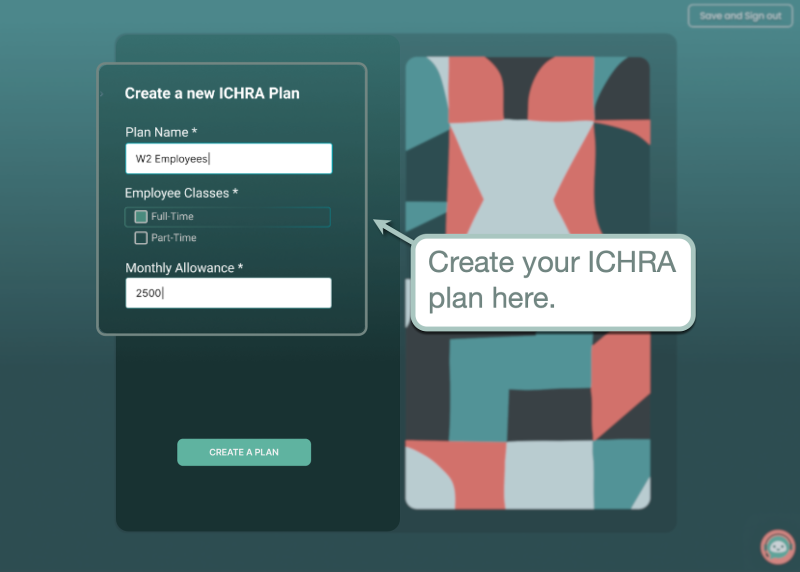 After setting up your business profile, you get to create your first ICHRA plan right away.