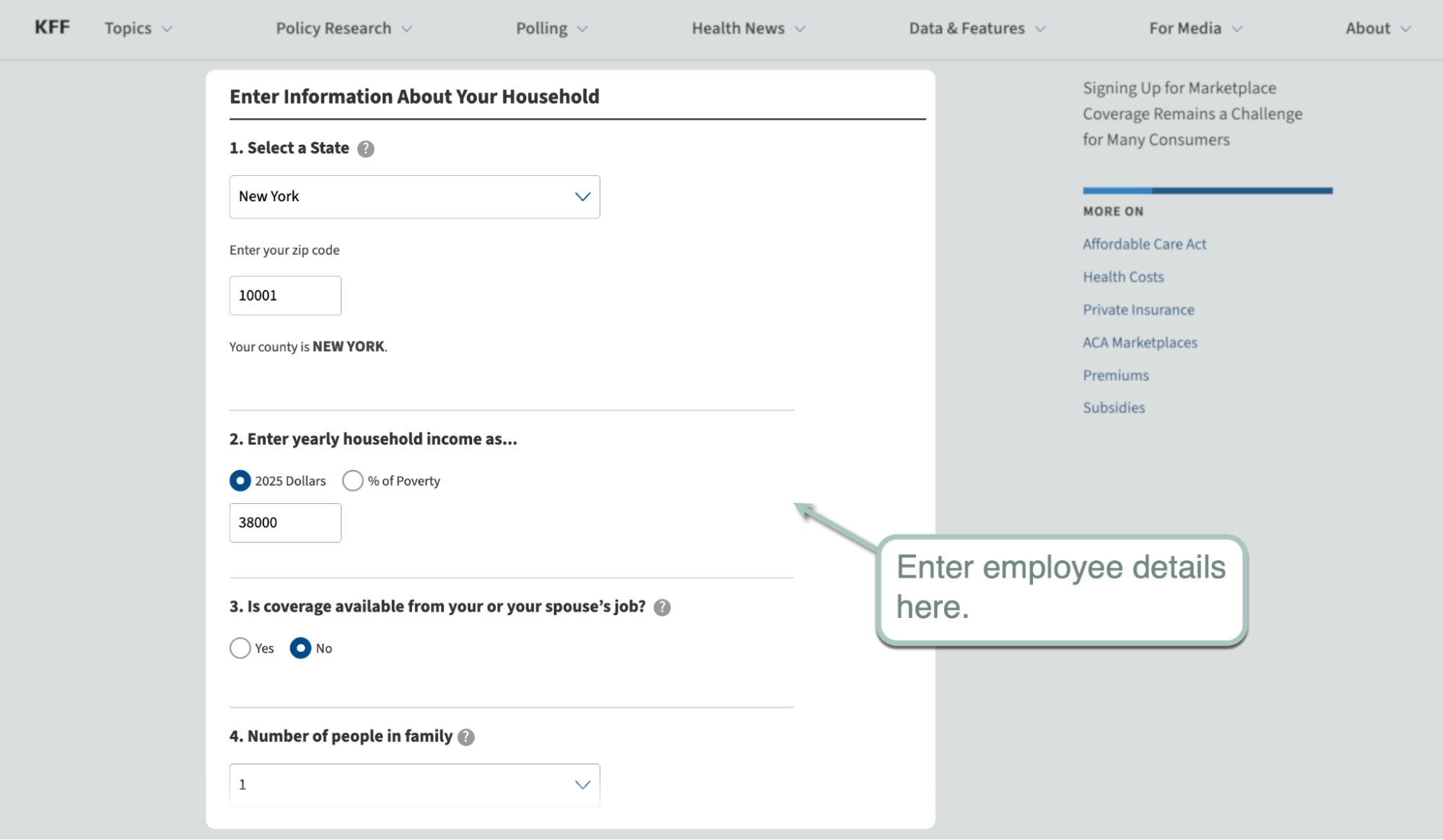 For this, use PTC calculators like the Subsidy Calculator by KFF. Just key in your employees' details, like their annual salary and zip code, and click 'Submit.'