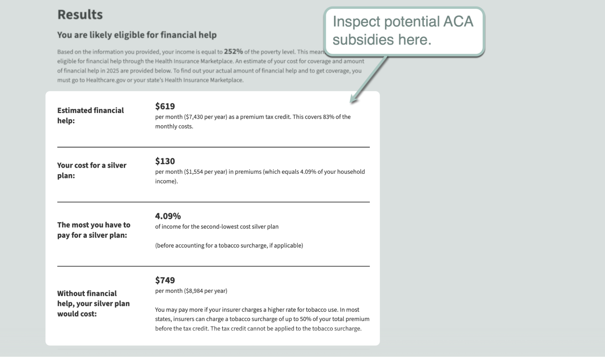 Once the results are in, you'll find out how much they would've received in ACA subsidies and how much they have to pay out-of-pocket.
